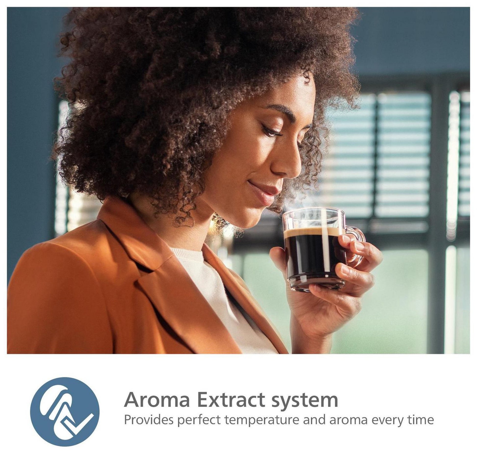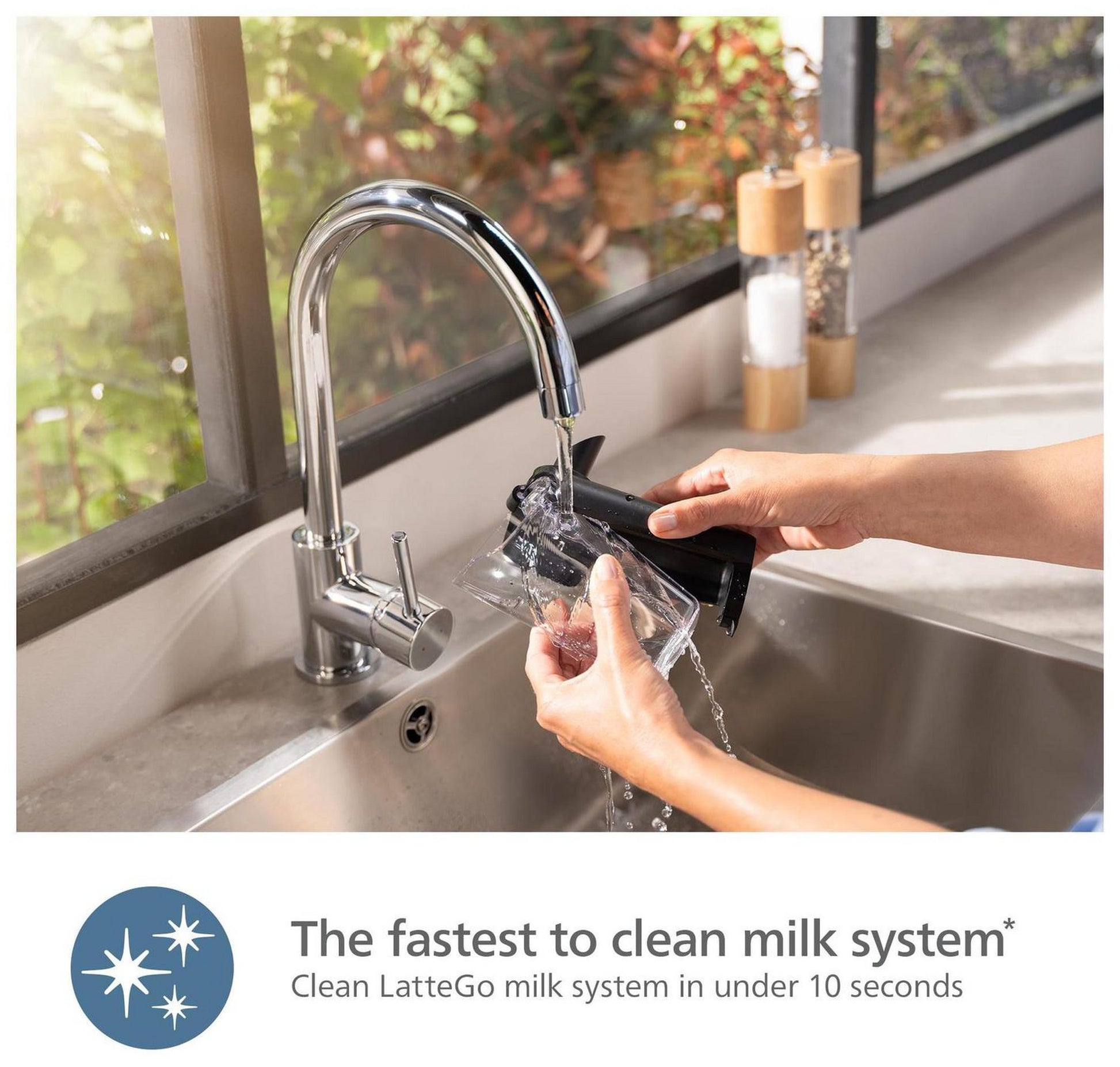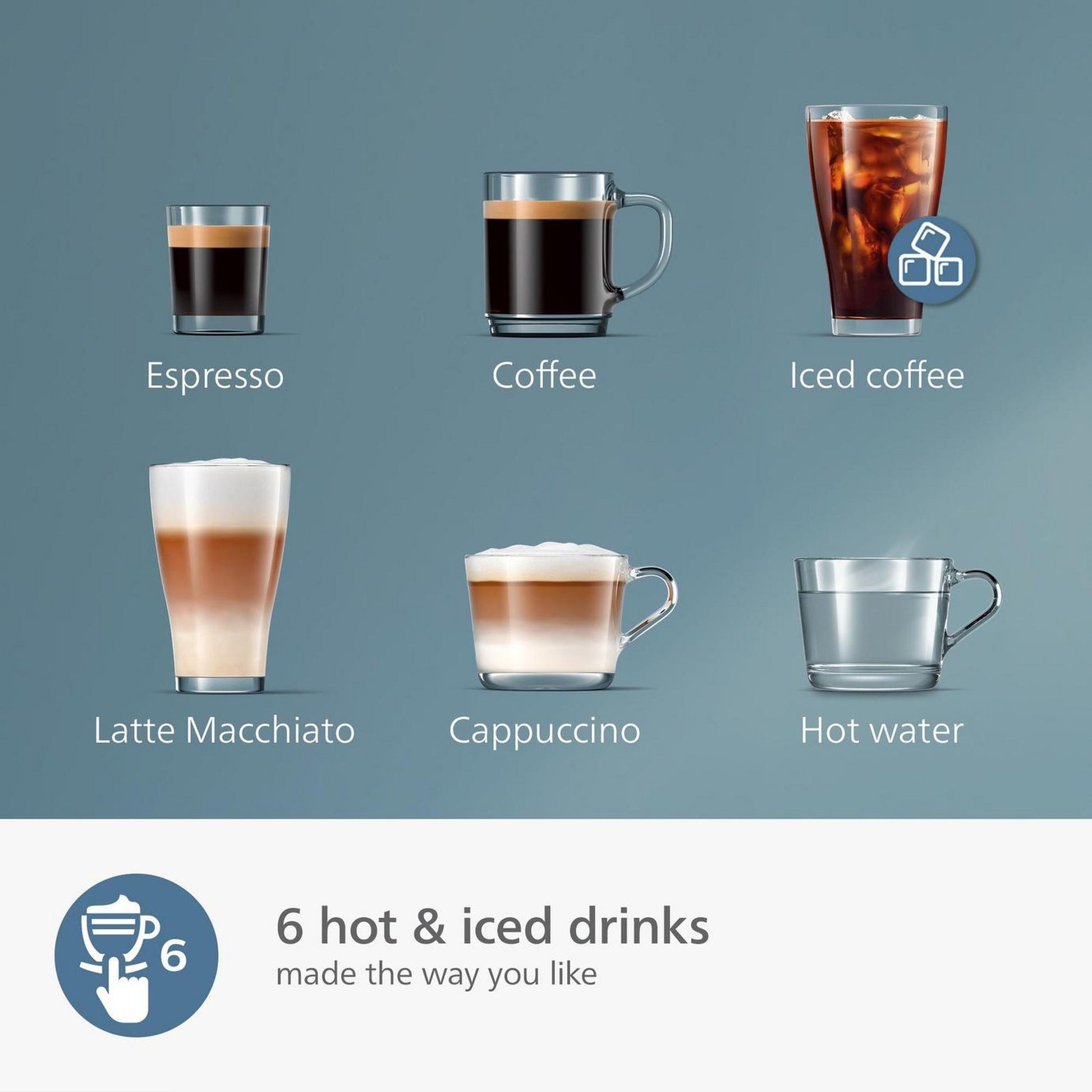 Enjoy 6 hot and refreshing drinks with one touch. Silky-smooth froth with LatteGo for various types of milk. Enriched flavour with our hard-wearing ceramic grinder. Your coffee your way. Easy coffee selection and customization. Designed for effortless use LatteGo, the fastest milk system to clean: 2 parts, no tube. Easy instructions and inspiration with the Coffee+ App. Up to 5000 cups without descaling thanks to Aquaclean. Quietly prepare aromatic coffee with SilentBrew.